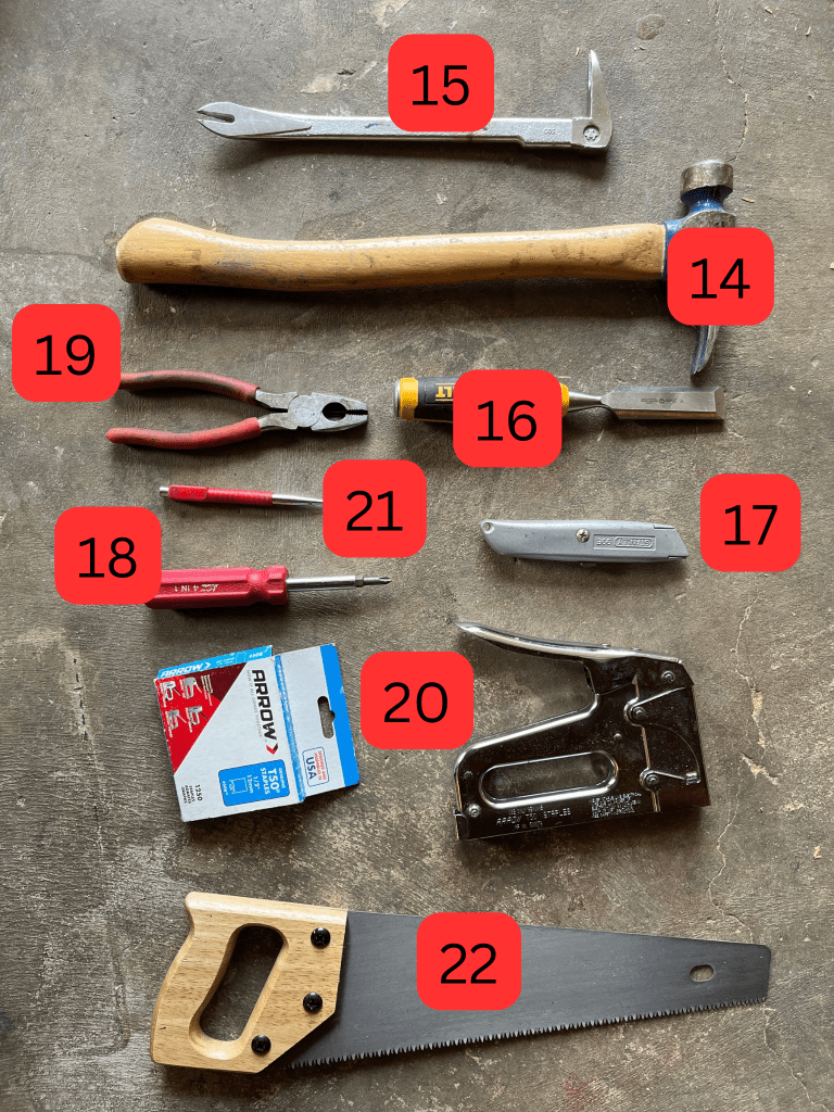 - Handsaw: Helpful for finishing cuts that an electric saw can’t.