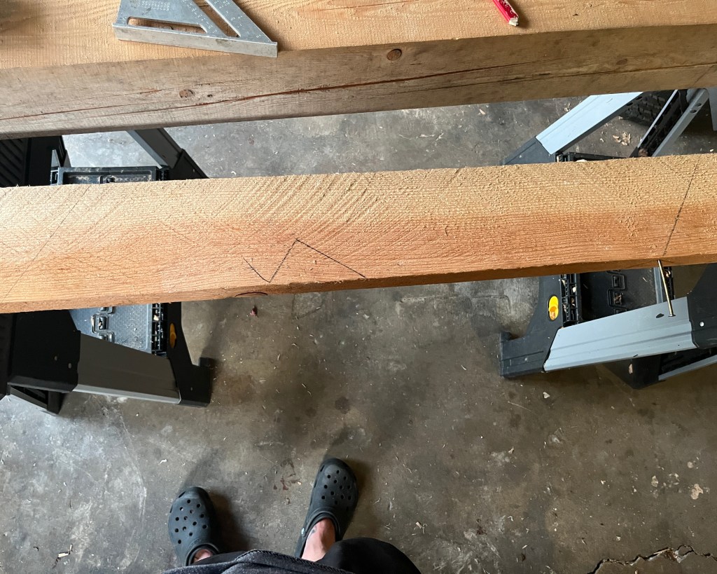 9. Trace the test fit rafter on the rest of your boards and cut your rafters.