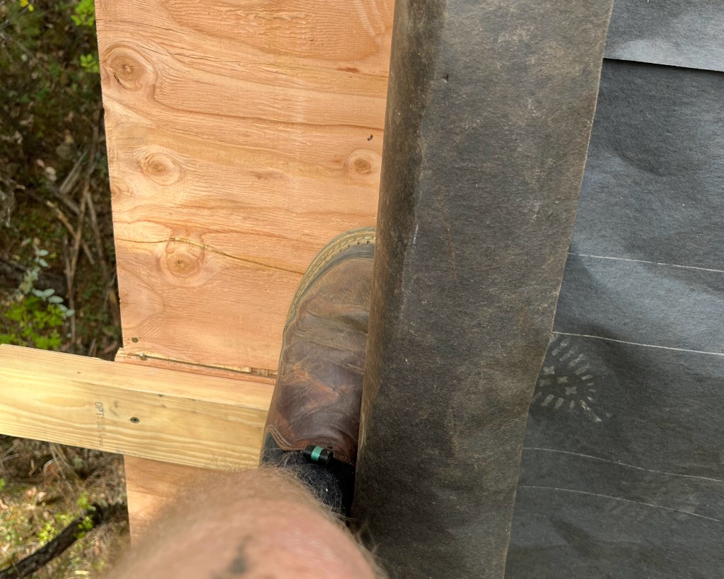 15. Lay Down and overlap roofing felt. Use a staple gun to attach it.